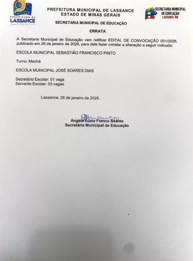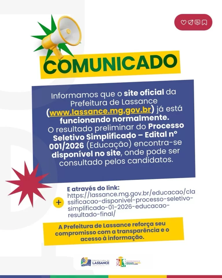 A Prefeitura Municipal de Lassance, por meio da Secretaria Municipal de Educação, informa que [...]