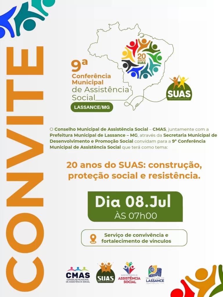 Venha participar da 9ª Conferência Municipal de Assistência Social, com o tema: “20 Anos do SU [...]
