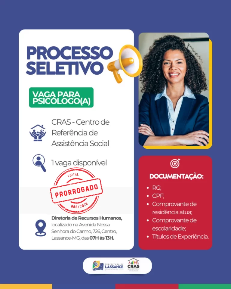 A Prefeitura de Lassance, por meio da Secretaria Municipal de Desenvolvimento e Promoção Socia [...]