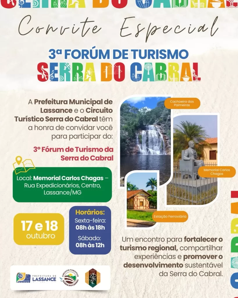 Pensando nisto, para debater novos caminhos, fortalecer iniciativas e abrir oportunidades, a Prefeitura Municipal de Lassance e o Circuito Turístico Serra do Cabral promovem o 3º Fórum de Turismo da Serra do Cabral, reunindo autoridades, empreendedores e a comunidade em um encontro de grande importância para o futuro do turismo local.