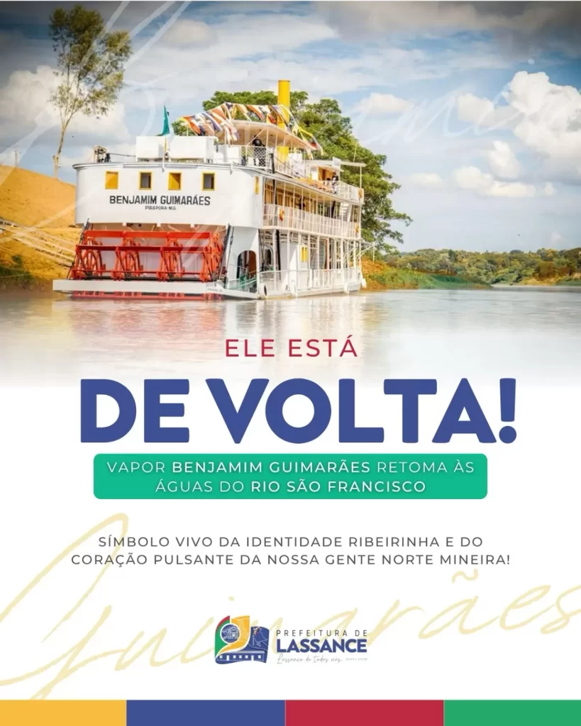 Com grande alegria, a Prefeitura de Lassance celebra o retorno das atividades do vapor Benjamim Guimarães, um dos mais importantes símbolos culturais do Norte de Minas, que tem como casa a cidade vizinha e irmã Pirapora.
